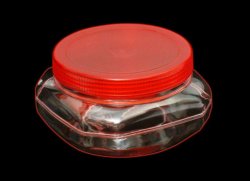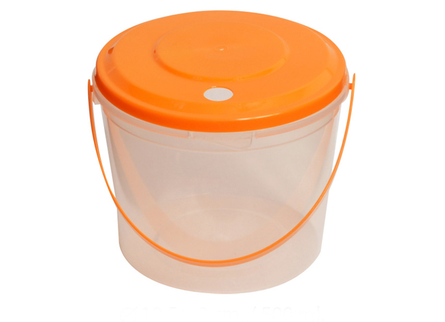 ถังเครื่องดืื่มกลมหูหิ้ว 16oz. ตัวใสฝาสีส้มเจาะรู105 x 90 mm./500 ML.