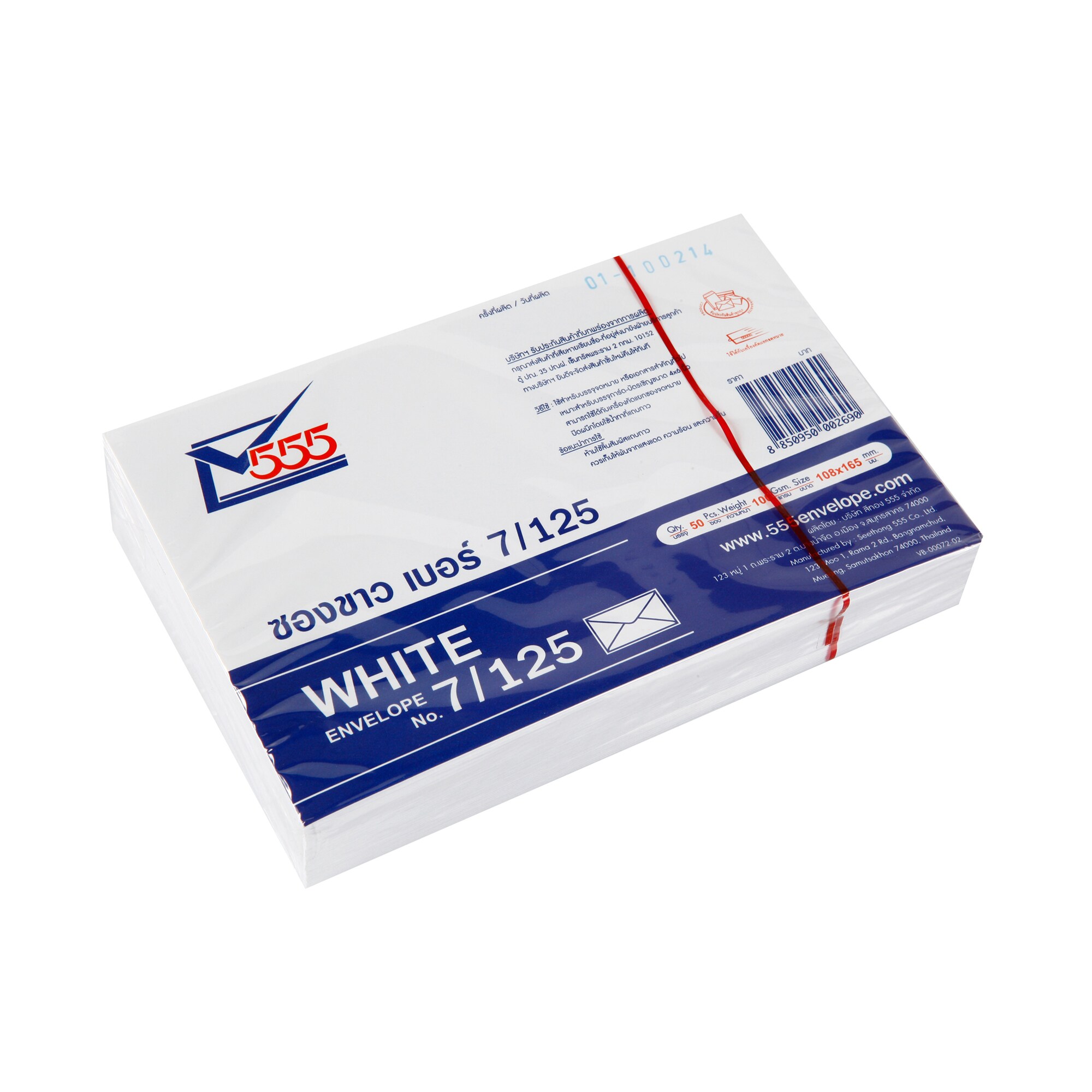 ซองจดหมายขาวฝาสามเหลี่ยม No. 7/125 (แพ็ค50ซอง) 555