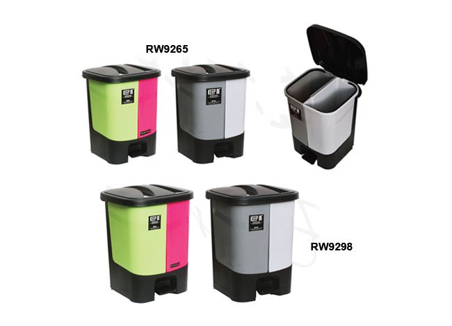 คุณสมบัติ : ถังขยะแบบขาเหยียบ บรรจุได้มากถึง 34 ลิตร แบ่งเป็น 2 ช่อง ช่องละ 17 ลิตร ผลิตจากเม็ดพลาสติก PP อย่างดี ไม่กรอบแตกหัก น้ำหนักเบา เคลื่อนย้ายสะดวก ทำความสะอาดง่าย