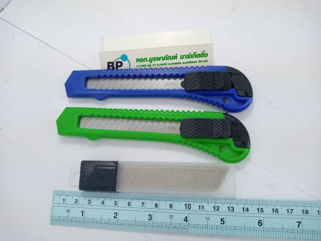 คัดเตอร์ด้ามพลาสติก ขนาดใหญ่ มีที่ล็อคใบมีด รหัส : 728 ราคา : 20 บ. .- ประเภท : กรรไกร/คลิปหนีบ คัดเตอร์ด้ามพลาสติก ขนาดใหญ่ มีที่ล็อคใบมีด
