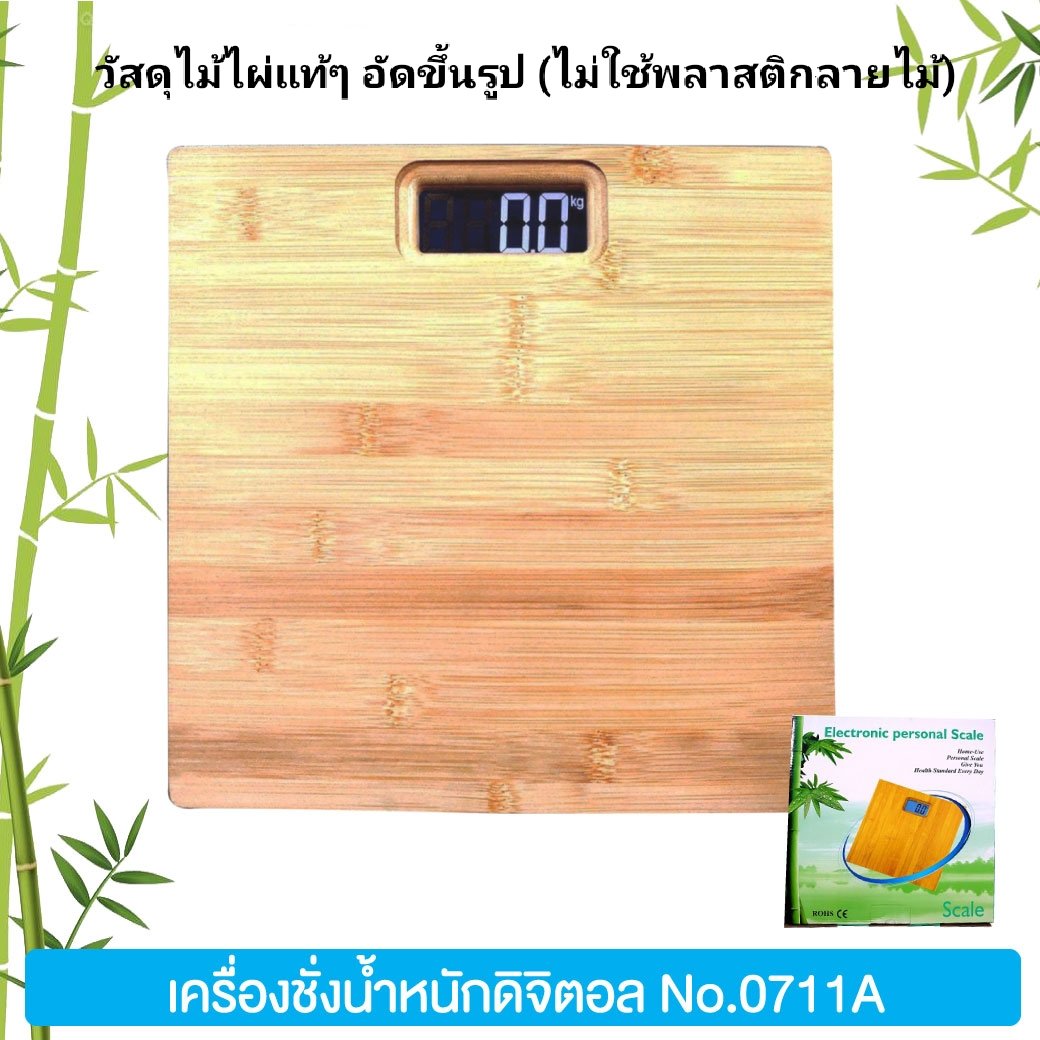 เครื่องชั่งน้ำหนักดิจิตอลหน้าไม้ไผ่ No.0711A (วัสดุไม้ไผ่แท้) เหมาะสำหรับ เป็นเครื่องชั่งอำนวยความสะดวกให้ลูกค้า ตกแต่งเพิ่มมูลค่าให้กับโรงแรม รีสอร์ท ห้องพัก
