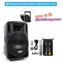 ตู้ลำโพงเอนกประสงค์แบบมีล้อลาก DECCON AK15-201 ขนาดลำโพง 15 นิ้ว เสียงดัง เหมาะกับงานบุญ งานบวช งานเลี้ยง