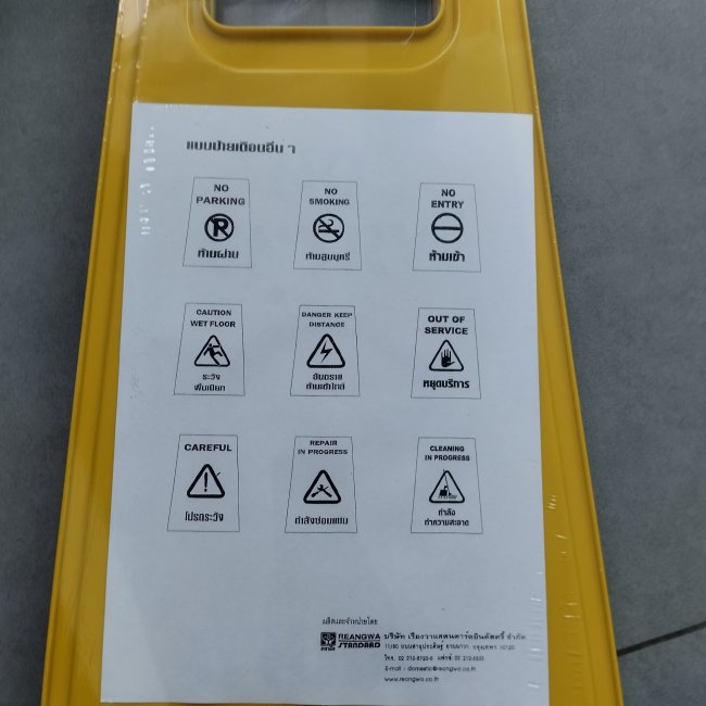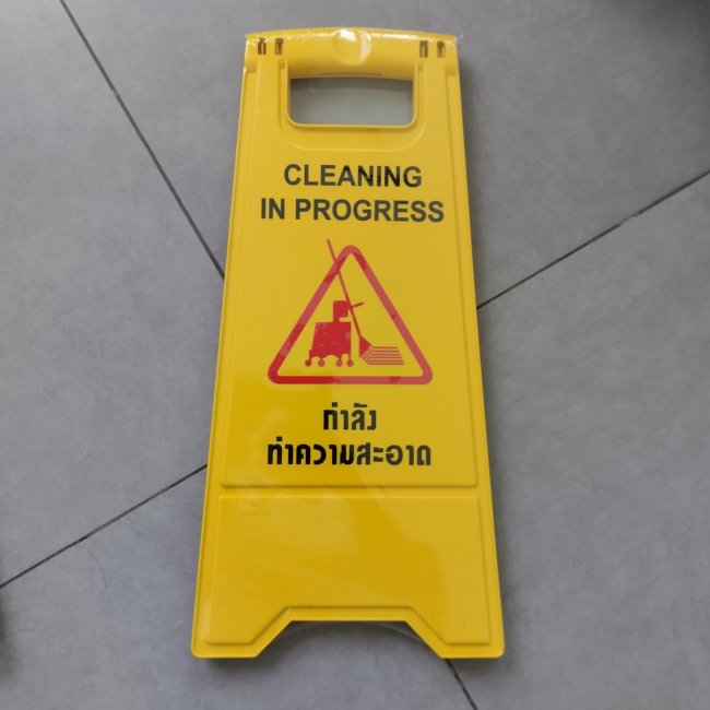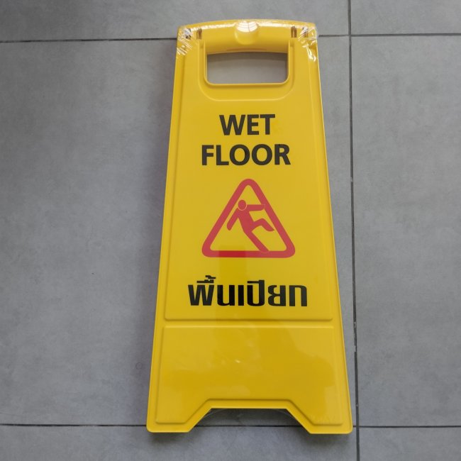 ป้ายเตือน กันพื้นเปียก ทำความสะอาด ระวังรื่น