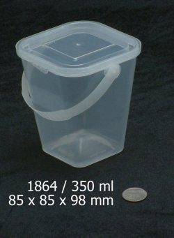 กล่องใส่อาหารทรงสี่เหลี่ยม มีหูหิ้ว (bu1864) Item No. : bu 1864 Dimension : 85 x 85 x 98 mm Capacity : 350 ml