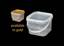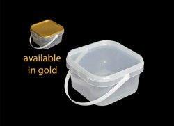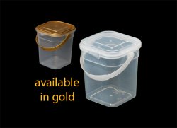 กล่องเหลี่ยมหูหิ้ว 26oz. ตัวใสฝาทอง